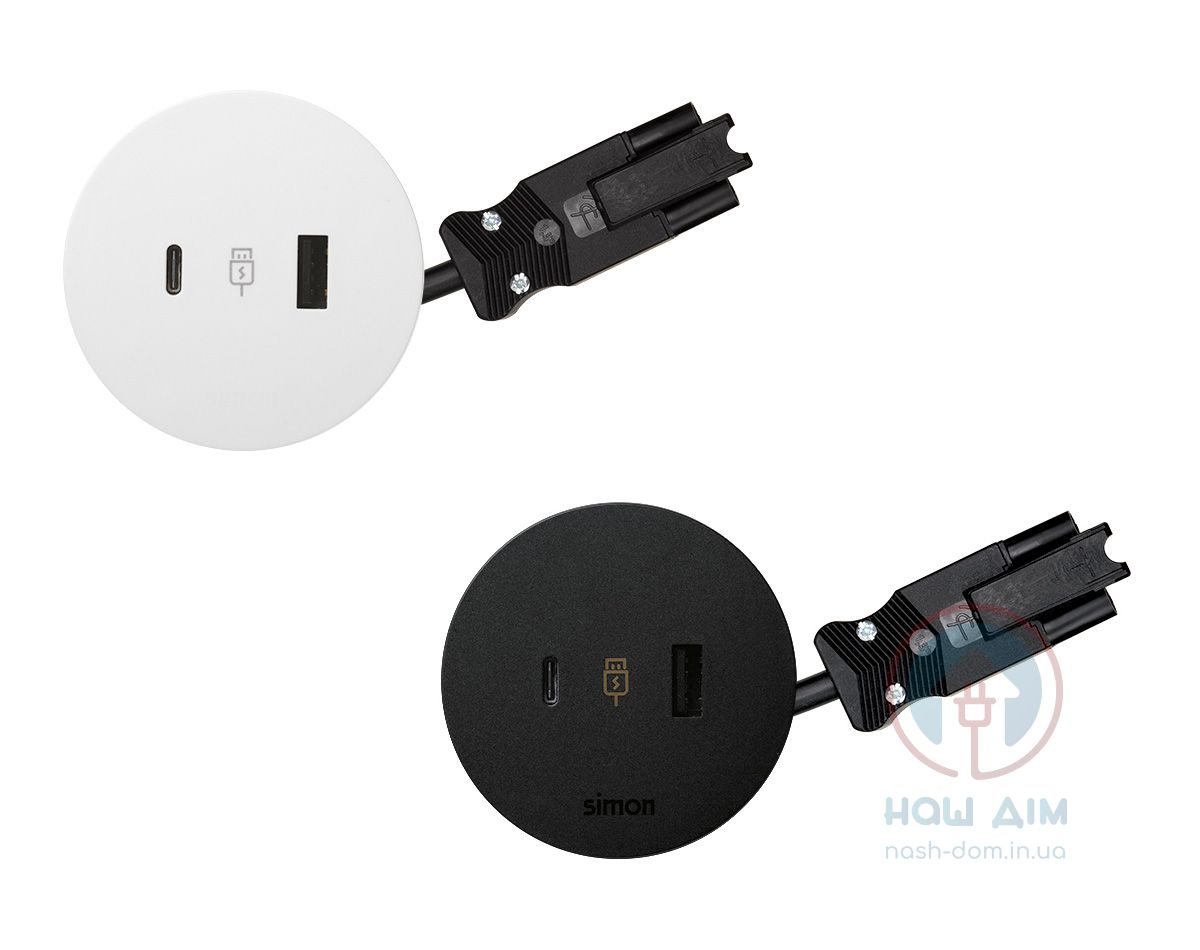 Врізний круглий блок подовжувач Simon 483 Port 220+USB-C зарядне. Купити в Україні