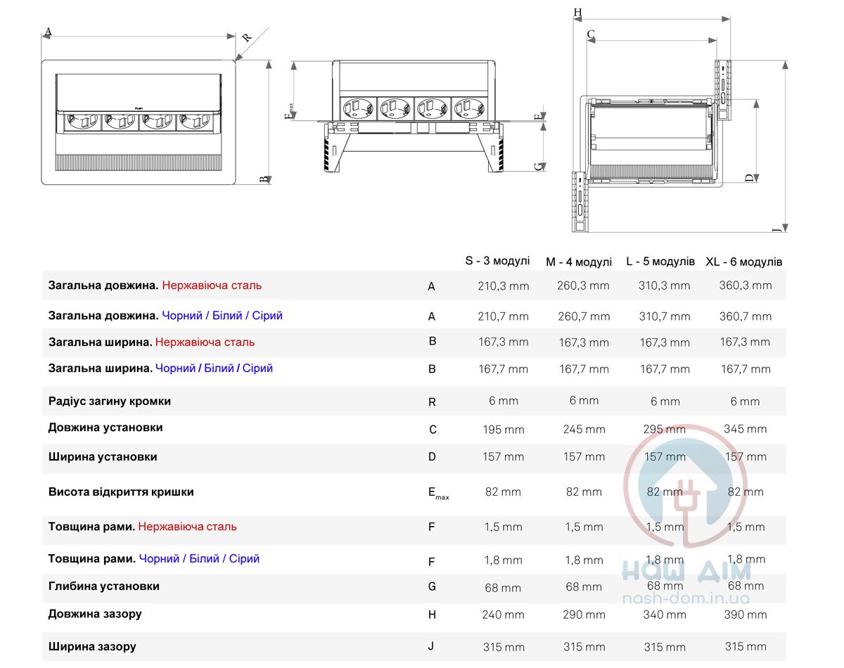EVOline FlipTop Push 2x220+USB-A зарядное+1xКейстоун. Автоматический подъем крышки