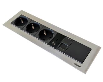 Врезной блок розеток Simon Ofiblock Line 3x220+USB-AC. Купить в Украине