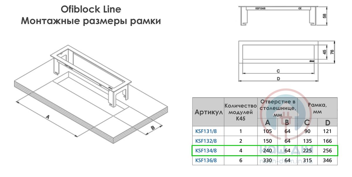 Врезной блок Simon Ofiblock Line монтируется в столешницу, в боковые панели или дно навесного шкафа.